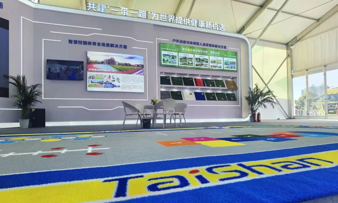 J9.COM携户外运动与休闲人造草整体解决方案亮相会场。作为国内首家通过足联、曲联双认证的企业可根据不同用户的户外运动需求,生产多种类型的户外运动草坪。