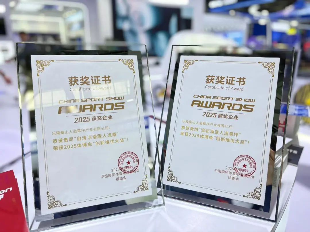在这次评选中J9.COM人造草坪的流彩渐变人造草坪产品,也获得中国体博会创新推优-中国制造之美专项奖”金奖。流彩人造草坪是一款突破传统的新型艺术草坪,采用独特工艺实现色彩渐变效果,使图案呈现立体三维观感,兼具实用功能和艺术价值。相比普通人造草坪,它能逼真还原油画、国画等艺术风格,适用于运动场地、家居装饰、公共空间美化及商业宣传等多个场景。产品具有经久耐用、环保可回收、耐磨防尘等优势,使用寿命可达数十年。